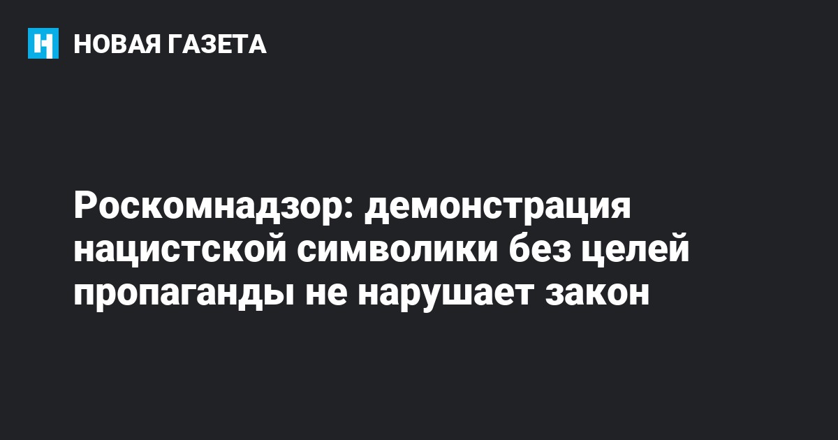 «При этом нацистская символика не может быть использована с целью оскорбления советского народа и памяти о понесенных в Великой Отечественной войне жертвах, для популяризации идей нацизма, теории расового превосходства, оправдания военных преступлений фашистов», – подчеркивает Роскомнадзор.