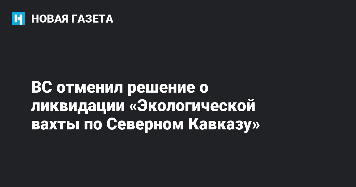 Верховный суд отменил решение о ликвидации организации «Экологическая вахта по Северному Кавказу», передает Интерфакс.
