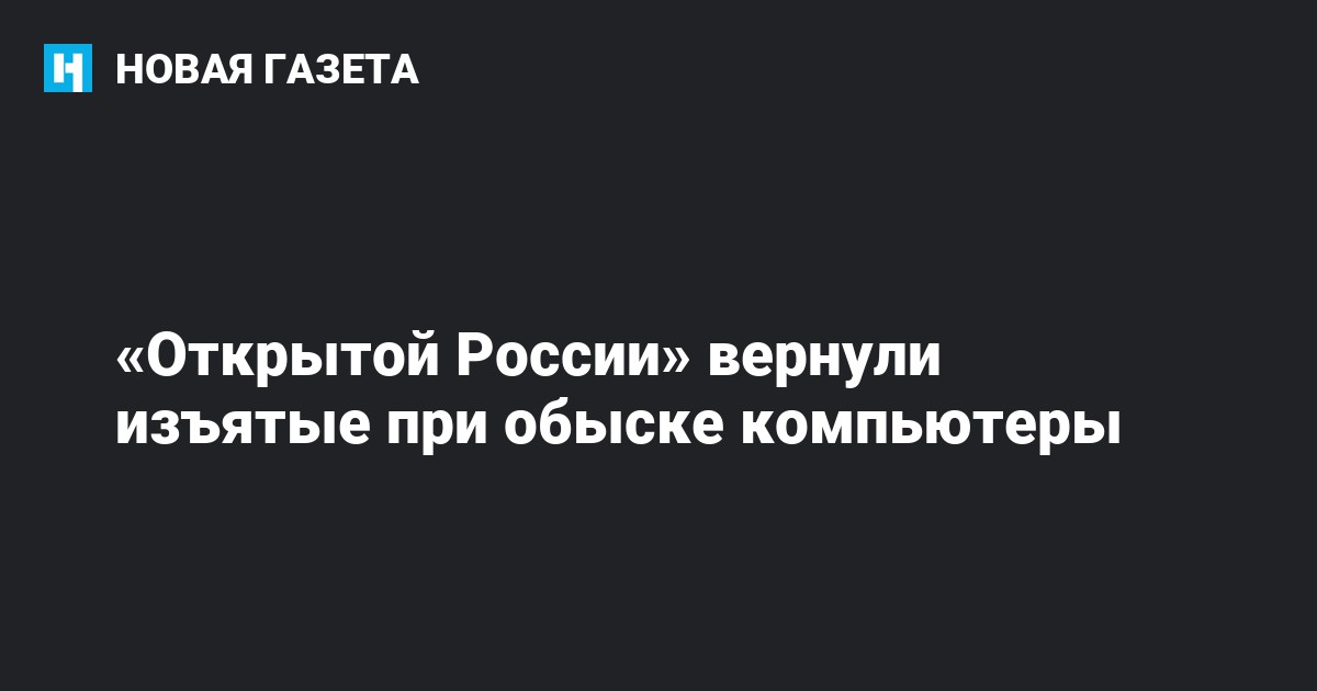 Общественному движению «Открытая Россия» вернули компьютеры, изъятые во время обыска. Об этом сообщается на странице организации в Twitter.