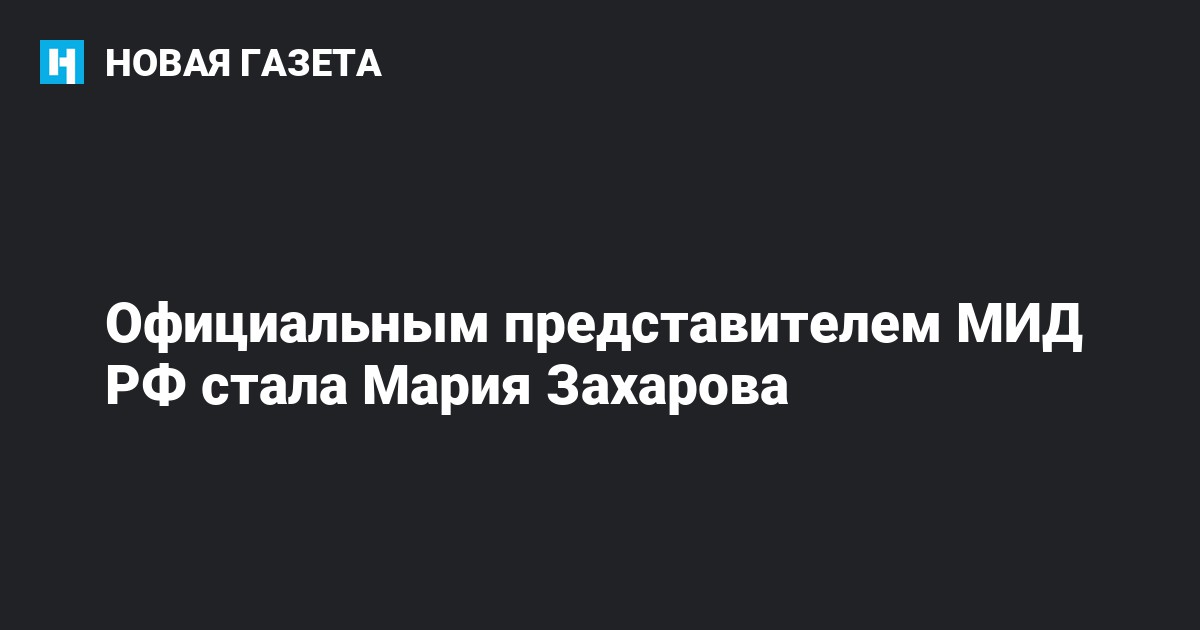 Официальным представителем Министерства иностранных дел России назначена Мария Захарова, сообщает ТАСС со ссылкой на заявление ведомства.