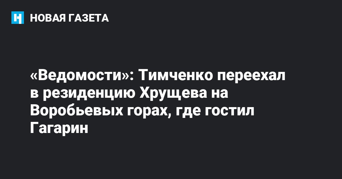 Газета «Ведомости» рассказала, что бизнесмен Геннадий Тимченко, экс-владелец Gunvor, человек из близкого окружения президента Путина, гражданин России и Финляндии и один из первых пострадавших от введения американских санкций, переехал из Швейцарии в московскую резиденцию Никиты Хрущева на Воробьевых Горах, где и проживает.