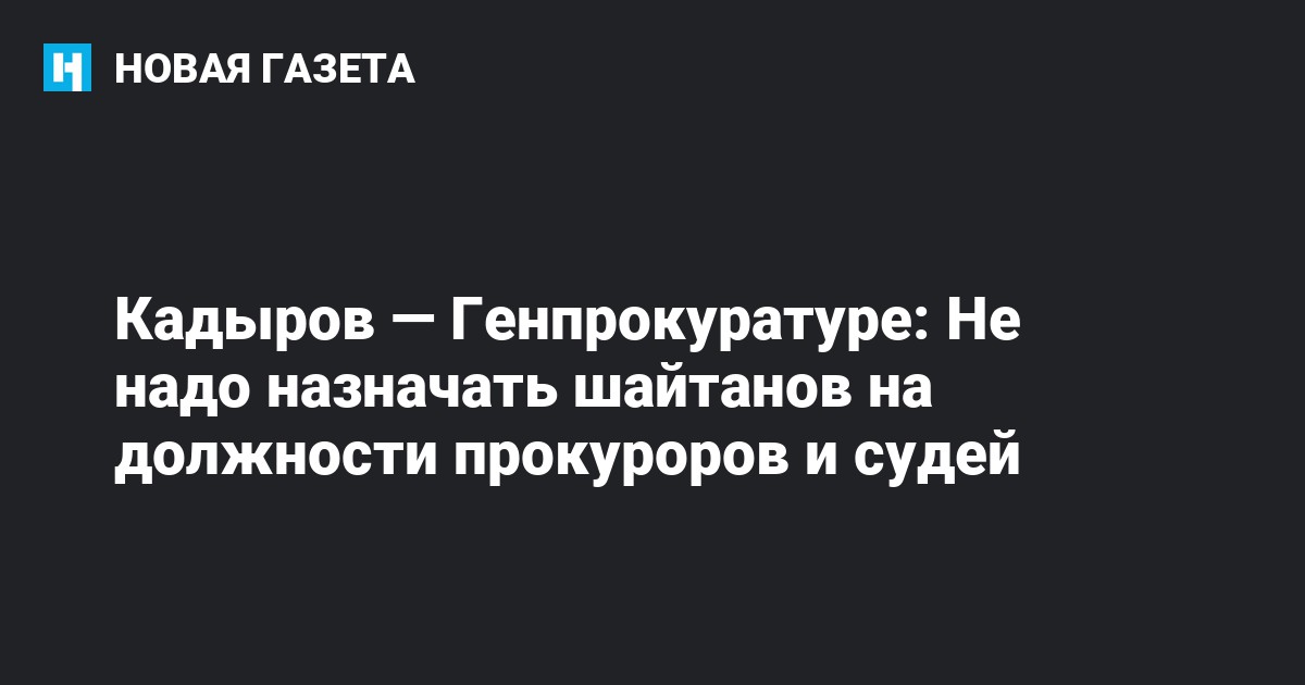 Глава Чечни Рамзан Кадыров объяснил Генпрокуратуре, почему в резких словах раскритиковал прокурора и судью Южно-Сахалинска. «Не надо назначать шайтанов на должности прокуроров и судей, тогда их никто не будет так называть», — написал Кадыров в социальной сети «Вконтакте».