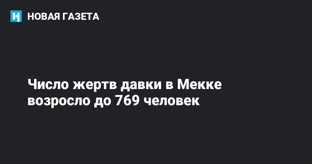 Число жертв давки во время паломничества в окрестностях Мекки (Саудовская Аравия) возросло до 769 человек, передает AFP.