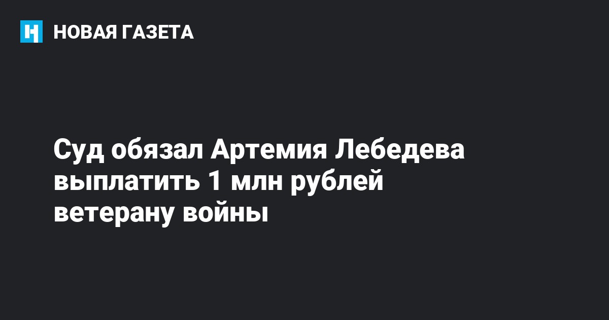 Мещанский суд Москвы взыскал с дизайнера Артемия Лебедева 1 млн рублей в качестве моральной компенсации по делу об оскорблении памяти о Великой отечественной войне, сообщает РАПСИ.