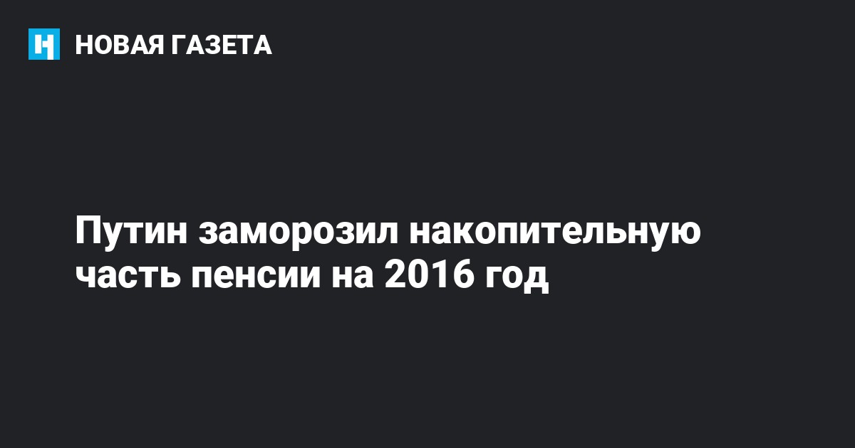 Президент России Владимир Путин подписал закон о продлении срока заморозки накопительной части пенсий россиян на 2016 году. Документ опубликован на официальном интернет-портале правовой информации.