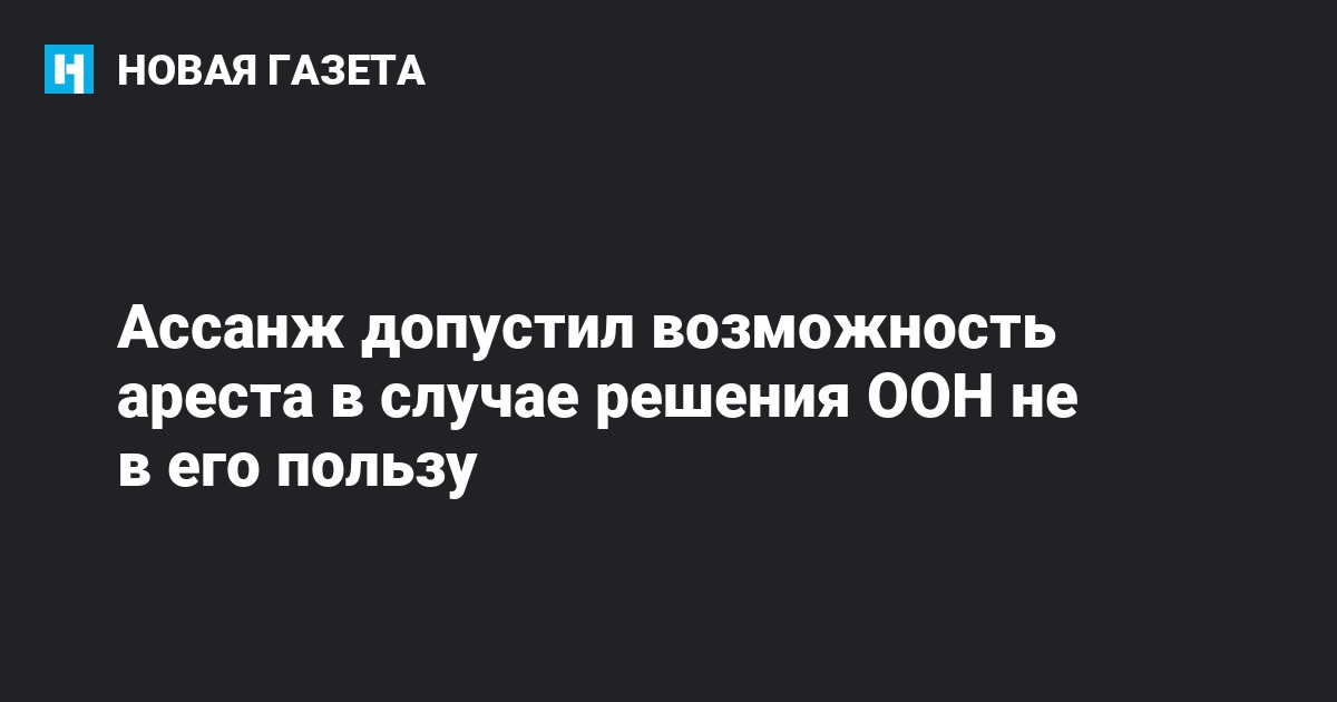 «Если ООН объявит автра, что я проиграл свое дело Великобритании и Швеции я выйду из посольства в полдень пятницы и позволю арестовать себя британской полиции», — сказано в сообщении. Ассанж объяснил, что сделает это, поскольку не будет существовать шанса на дальнейшие апелляции.