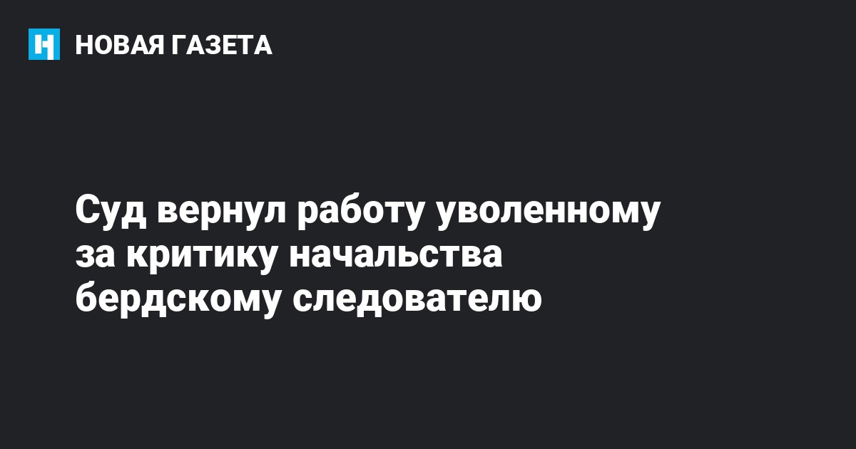 Центральный районный суд Новосибирска восстановил на должности экс-начальника Следственного комитета по городу Бердск Сергея Копырина, которого уволили за критику руководства, сообщает «Курьер.Среда.Бердск».
