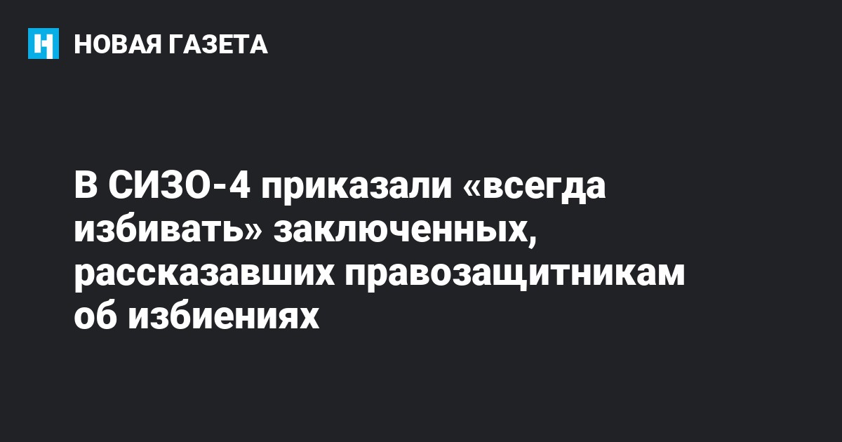 «Это информация пока неофициальная, но я отношусь к ней с доверием. В правоохранительных структурах дали понять, что заняли активную позицию по отношению к тому, что происходит в СИЗО-4. В отношении начальника изолятора Хорева будет проводиться проверка, на это время ему предложили написать рапорт по собственному желанию», — рассказал собеседник «Новой газеты».
