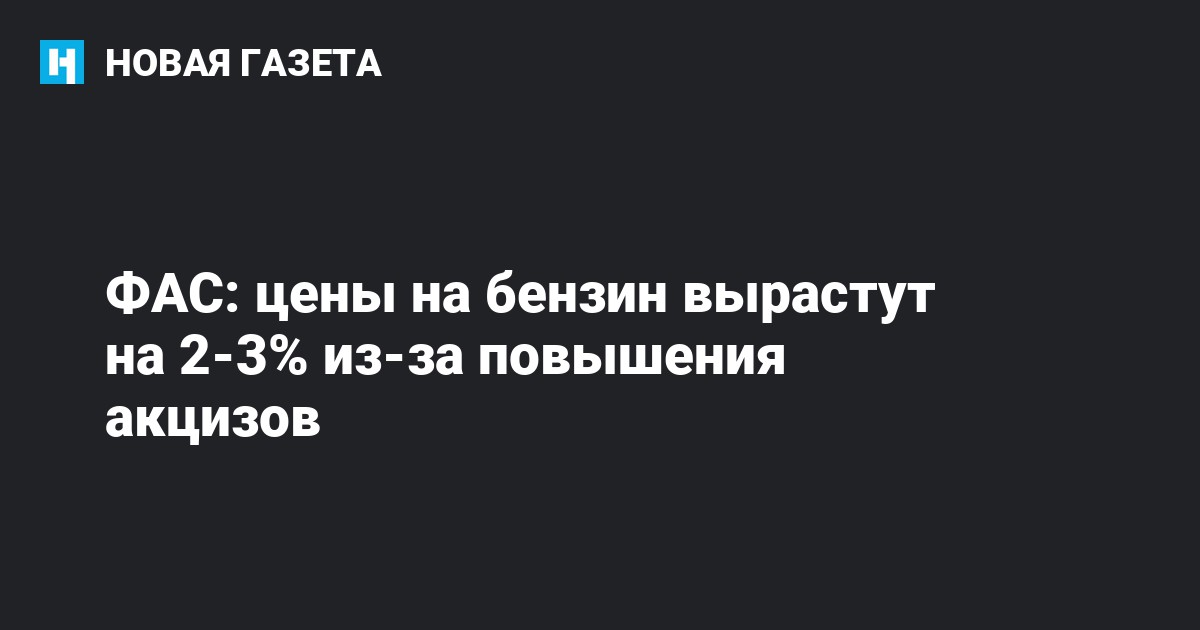 Повышение акцизов на бензин и дизельное топливо вызовет рост розничных цен на эту продукцию в России на 2-3%, сообщает РИА Новости со ссылкой на главу Федеральной антимонопольной службы Игоря Артемьева