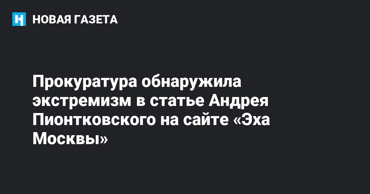 Генпрокуратура РФ обнаружила признаки экстремизма и призывы к нарушению территориальной целостности России в статье публициста Андрея Пионтковского о Чечне, опубликованной на сайте «Эха Москвы». Об этом в Instagram сообщил депутат Госдумы Шамсаил Саралиев. «По вопросам, связанным с моим "преступлением", признаки которого обнаружило ведомство г-на Чайки, обращайтесь к моему адвокату Марку Фейгину», — прокомментировал событие в твиттере сам Пионтковский.