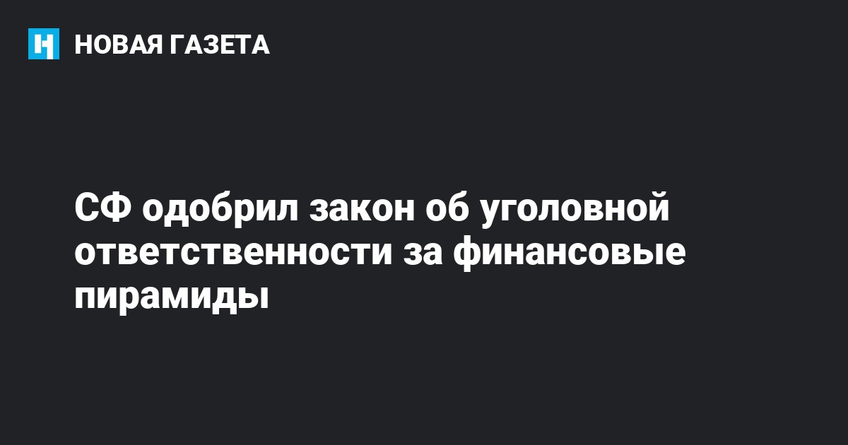 Совет Федерации одобрил правительственный закон, устанавливающий уголовную ответственность за организацию финансовых пирамид, передает РИА Новости.