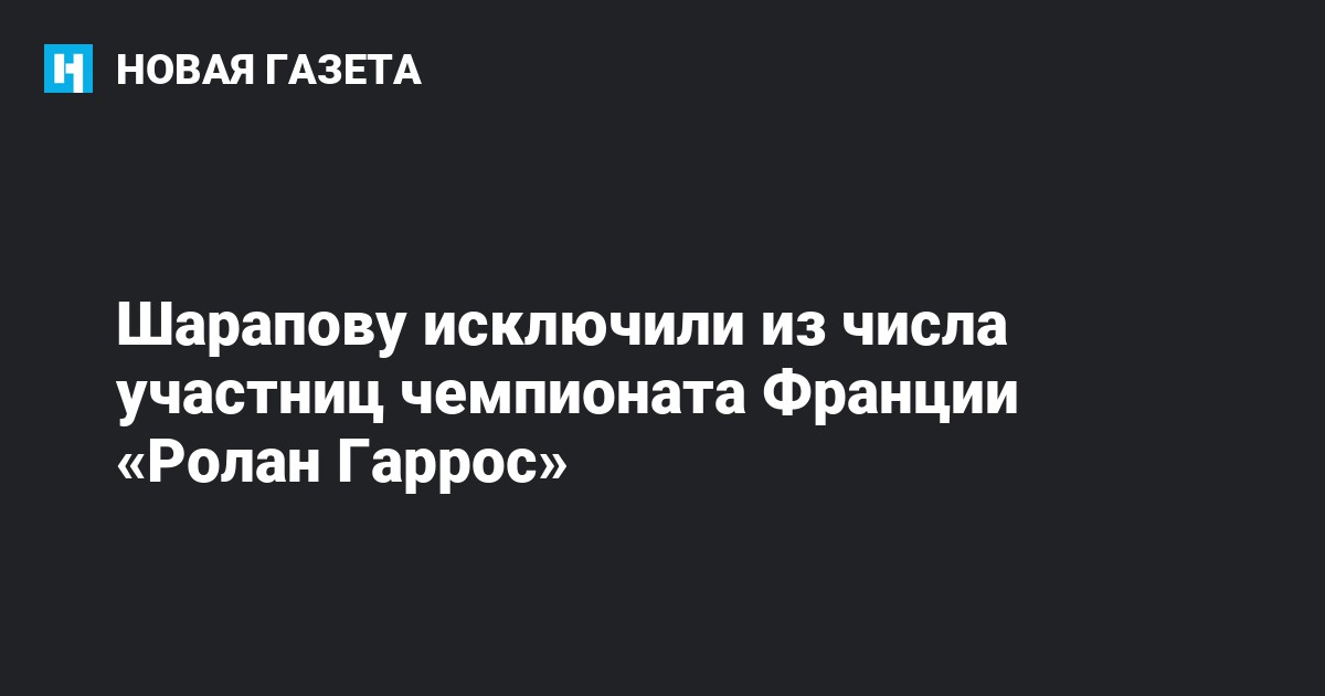 Российскую теннисистку Марию Шарапову исключили из списка участниц Открытого чемпионата Франции «Ролан Гаррос», который пройдет с 22 мая по 5 июня. Ее имени не оказалось в списке, опубликованном на официальном сайте турнира.