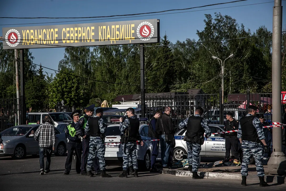 Экипаж ППС вызвал подкрепление. К Хованскому кладбищу оперативно выдвинулись сотрудники УВД по Троицкому и Новомосковскому административным округам, несколько сот бойцов Росгвардии — для которых это был чуть ли не первый выезд в новом качестве.