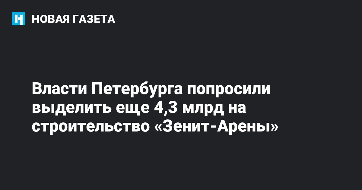 Комитет по строительству Петербурга обратился в законодательное собрание с просьбой выделить дополнительные на 4,32 млрд рублей на строительство стадиона «Зенит-Арена», сообщает Интерфакс.