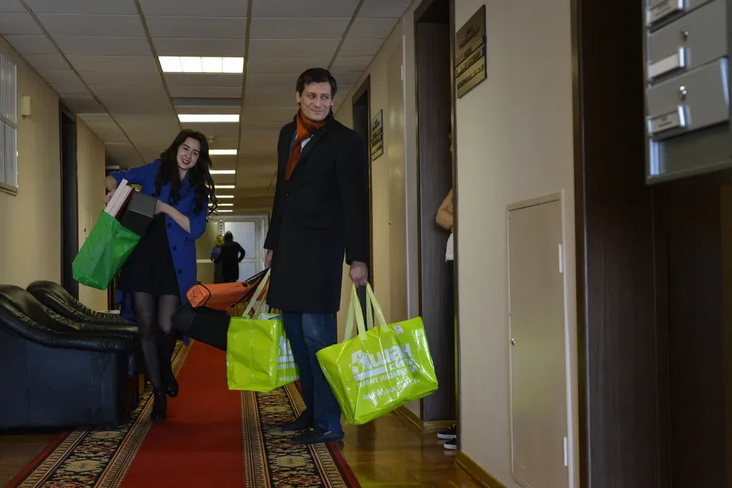 Дмитрий Гудков забирает вещи из Госдумы. Фото: Виктория Одиссонова / «Новая газета»
