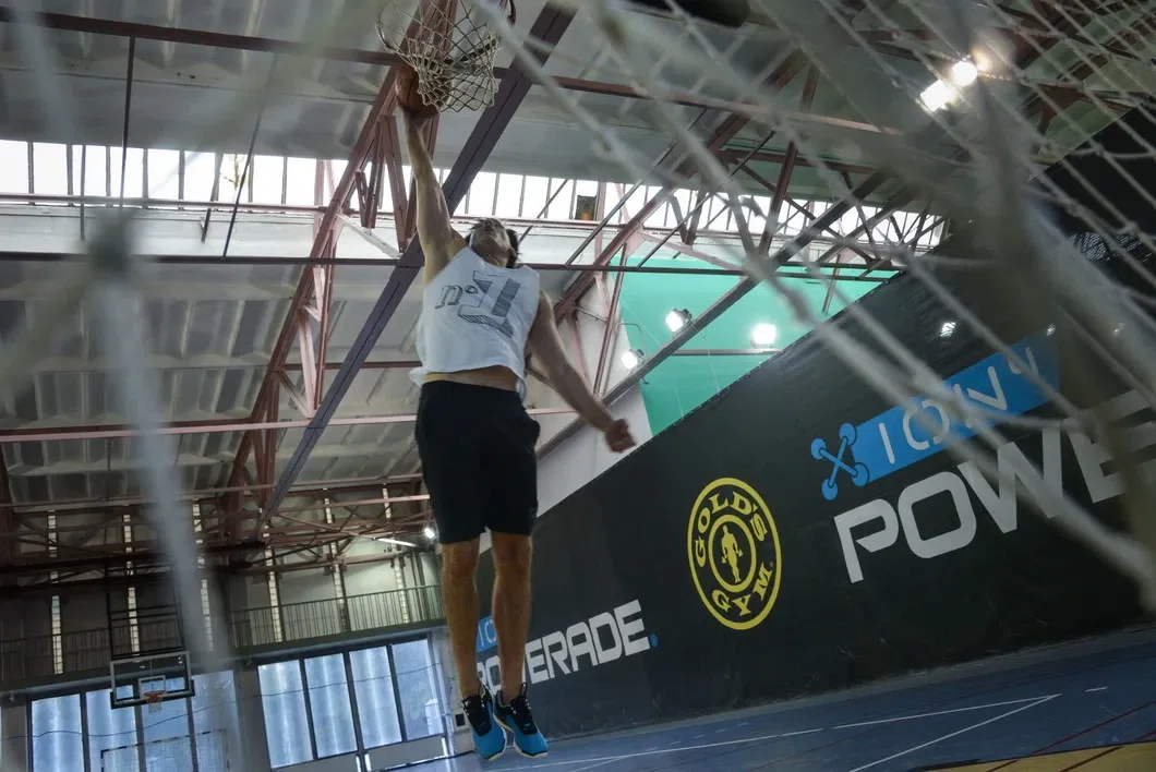 «Слэм-данк я хоть сейчас сделаю». КМС по баскетболу Гудков в спортзале. Фото: Виктория Одиссонова / «Новая газета»