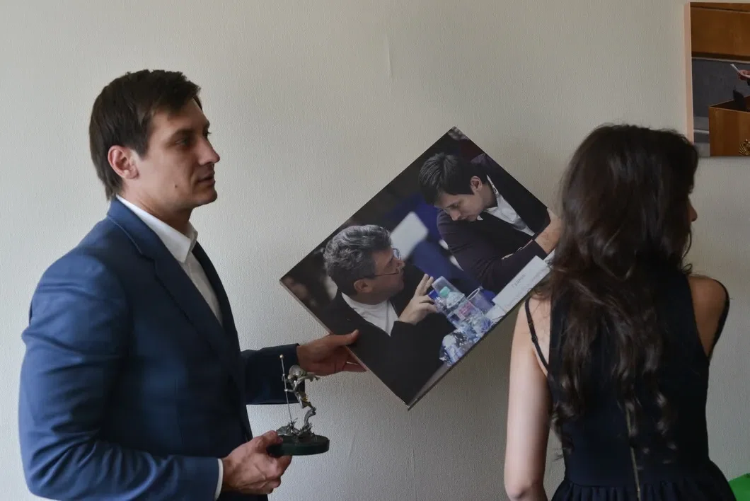 В первую очередь Гудков забирает из кабинета фотографию с Борисом Немцовым. Фото: Виктория Одиссонова / «Новая газета»