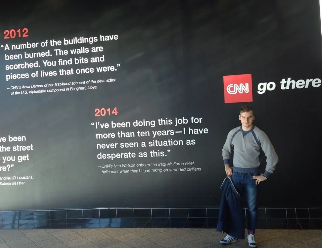 Дэвис ведет нас на экскурсию по штаб-квартире CNN. В огромном комплексе из нескольких зданий, подведенных под общий стеклянный купол, работают главные офисы национальных и международных новостей, испаноязычная редакция. При этом работу политических и экономических направлений курируют, соответственно, из отдельных офисов CNN в Вашингтоне и Нью-Йорке. Вещание канала попеременно происходит из студий в Атланте, Лондоне, Дубае и Гонконге. Производство также ведется в Лос-Анджелесе. Ведущий может работать из студии хоть в Вашингтоне или Нью-Йорке, но управление эфиром находится все равно здесь — под куполом в CNN-Center.