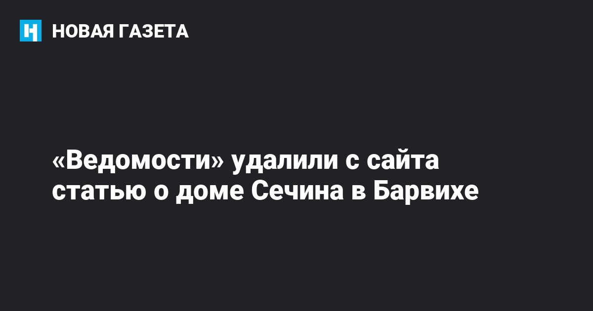 С сайта газеты «Ведомости» удалена статья «Сечин вьет гнездо в Барвихе».