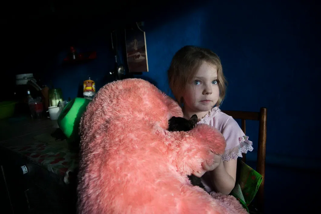 В третьей избе нам навстречу выбегает девочка Василиса. В кофте на вырост, чумазая. В школу ее сегодня не пустили, потому что холодно. На полу валяются одежда и игрушки, Никитина-младшая визжит и улюлюкает, Никитина-старшая рассказывает, что их семью кормят корова, бык, огород, а макароны, рис, гречку и хлеб в Старице покупает сын-школьник.