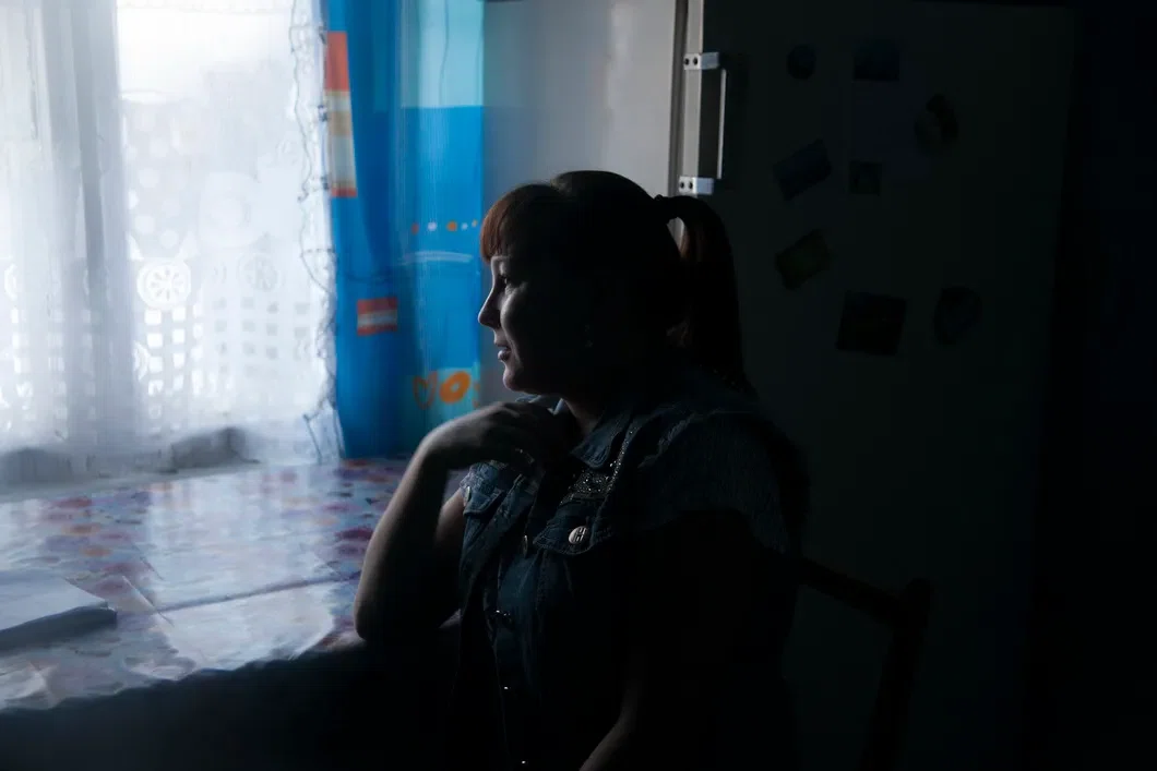 В дороге она смотрит на телефон — ловит сеть, чтобы позвонить дочери-школьнице с обычным маминым: «Разогрей завтрак. Одевайся теплее».