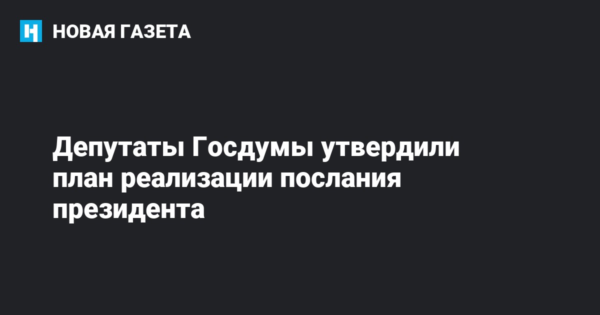 Межфракционная рабочая группа Госдумы по реализации положений послания президента РФ Федеральному собранию утвердила план законопроектной деятельности, передает ТАСС со ссылкой на руководителя группы, первого вице-спикера Александра Жукова.