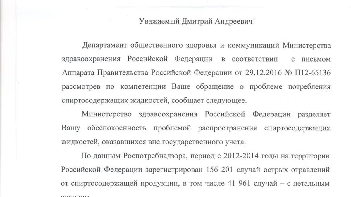 Следующим абзацем ведомство бесстрастно констатирует, что«по данным Роспотребнадзора, в период с 2012 по 2014 год зарегистрировано 156 201 случай острых отравлений спиртсодержащей продукцией, в том числе 41 961 — с летальным исходом».