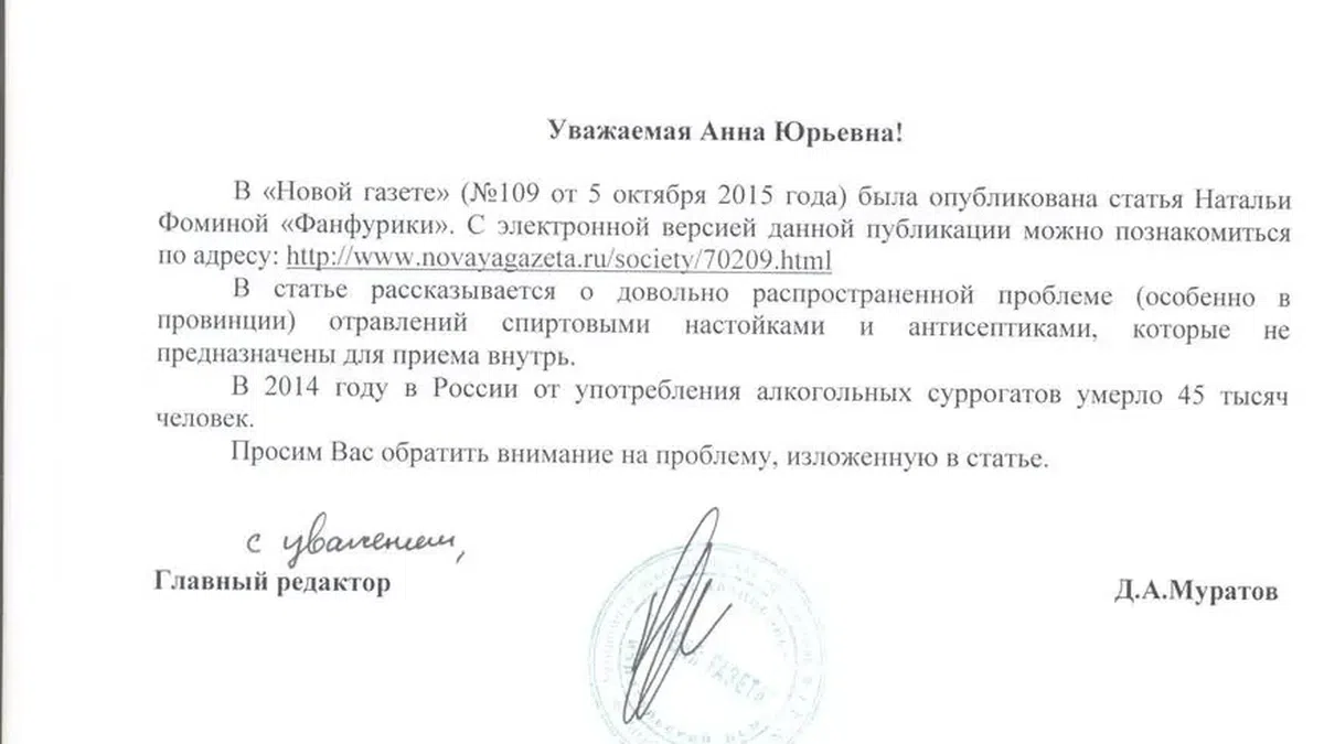 «Новая газета» почти полтора года состоит в захватывающей переписке с федеральным Минздравом. Предметом нашего общения с инстанцией являются фанфурики — те самые, смертоносные, о чем давно говорим мы и о чем только что задумался премьер-министр.