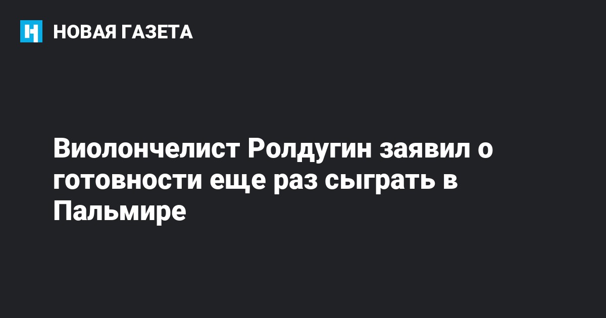Художественный руководитель Санкт-Петербургского Дома музыки, виолончелист Сергей Ролдугин в интервью телеканалу «Россия 24» выразил готовность еще раз выступить с концертом в сирийской Пальмире.
