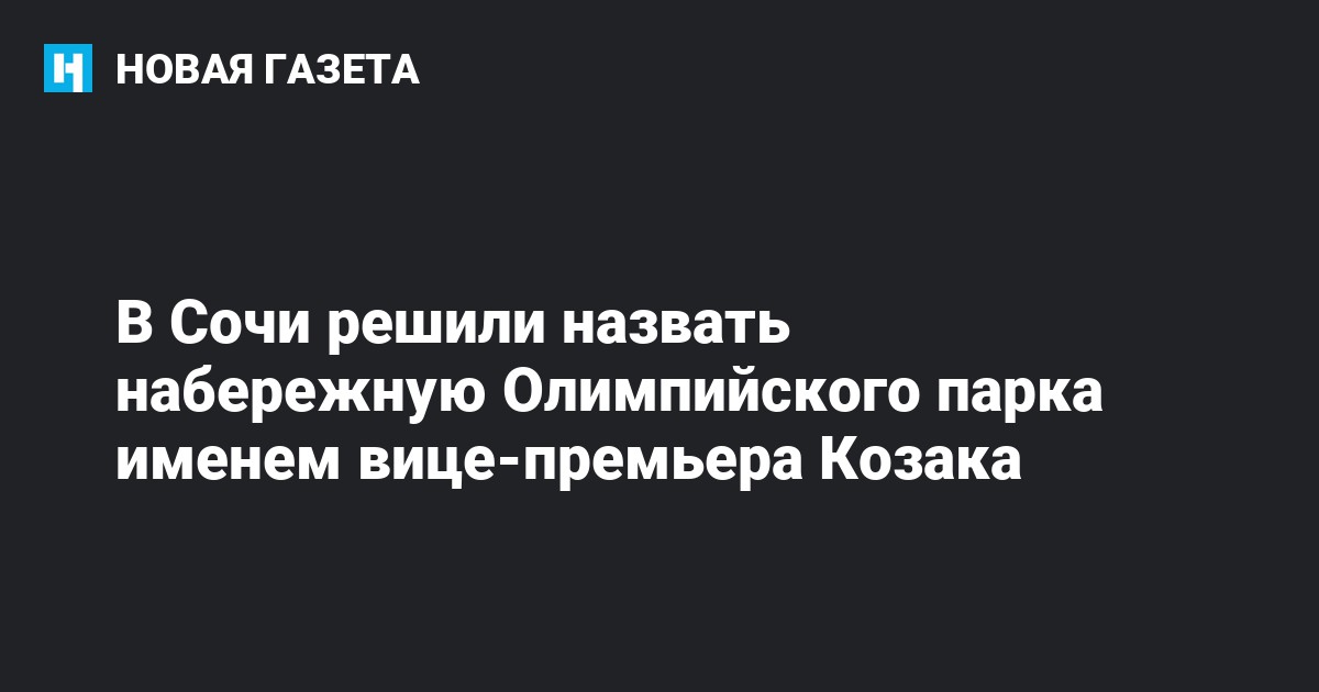В беседе с «Новой газетой» представитель Козака Илья Джус высказал мнение, что вице-премьер, скорее всего, выступит против того, чтобы набережную Олимпийского парка в Сочи называли его именем.