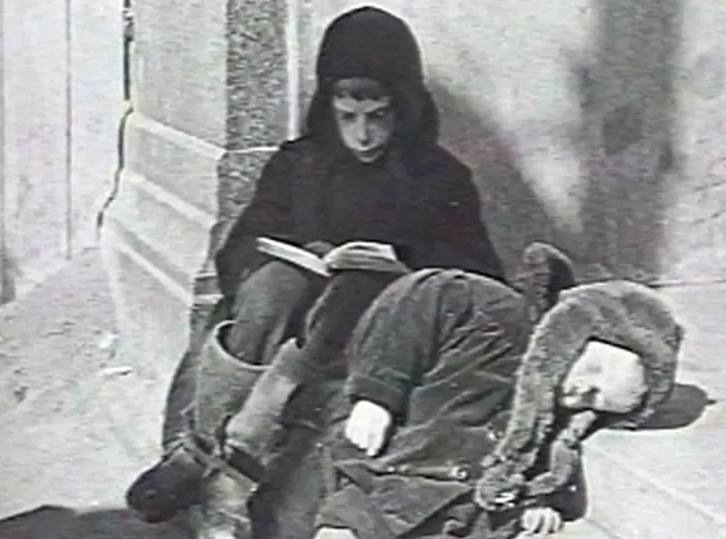 «Я шел по Берлину и увидел двух людей. Один из них был с повязкой слепого, другой — его поводырь. Я подошел и спросил: «Откуда вы?» Они не знали. «Куда вы идете?» Этого они тоже не знали. Они дошли до конца света. Старики и дети, беспомощные дети особенно трогали мое сердце во время войны. У меня был с собой мешок с консервами и другими продуктами. Я отдал его им». Евгений Халдей, советский военный фотограф