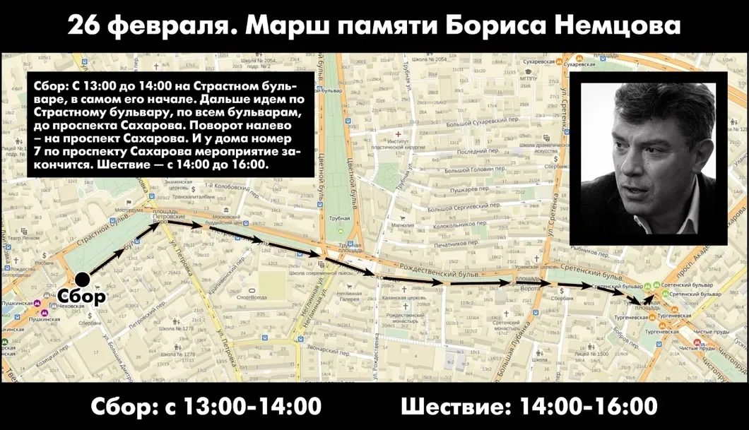 Михаил Шнейдер, член оргкомитета марша памяти, пояснил: «Мы договорились с мэрией, чтобы полиция не чинила препятствия, когда люди будет индивидуально, по желанию, приходить на мост и возлагать цветы, как это было в прошлом году».