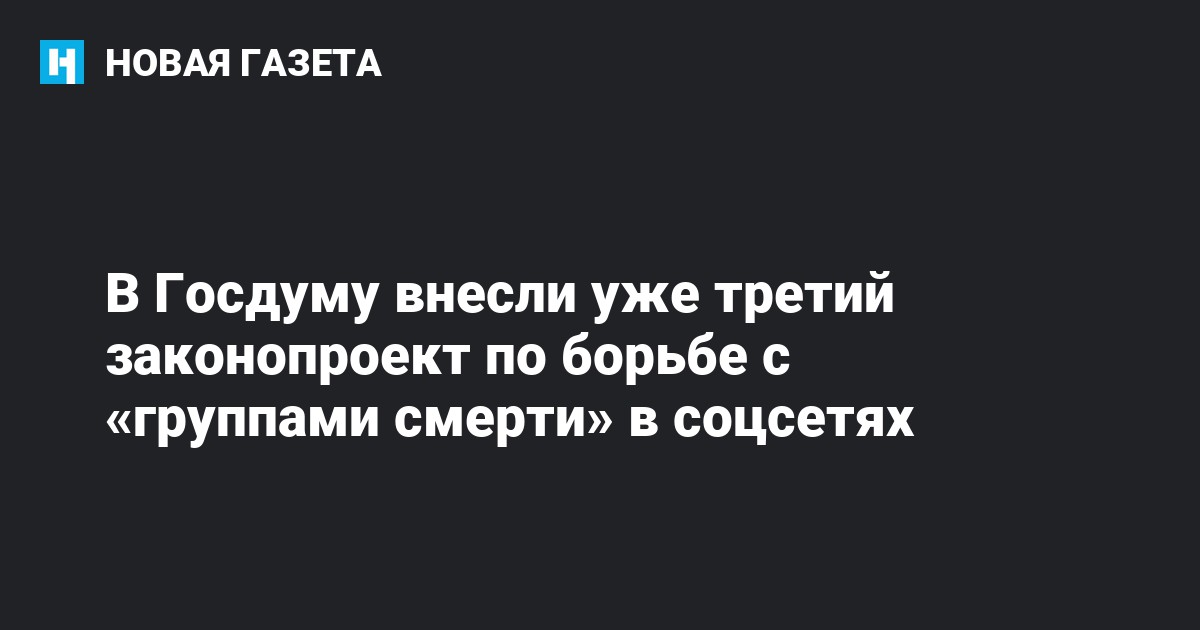 Это уже третий законопроект по борьбе с так называемыми «группами смерти» в соцсетях, который поступил в Госдуму. Ранее подобный документ представила депутат Ирина Яровая. Помимо ужесточения наказания за склонение несовершеннолетних к суициду, она предложила создать кибердружины, способные выявлять такие группы в интернете. Кроме того, свой вариант законопроекта внес сенатор Антон Беляков.