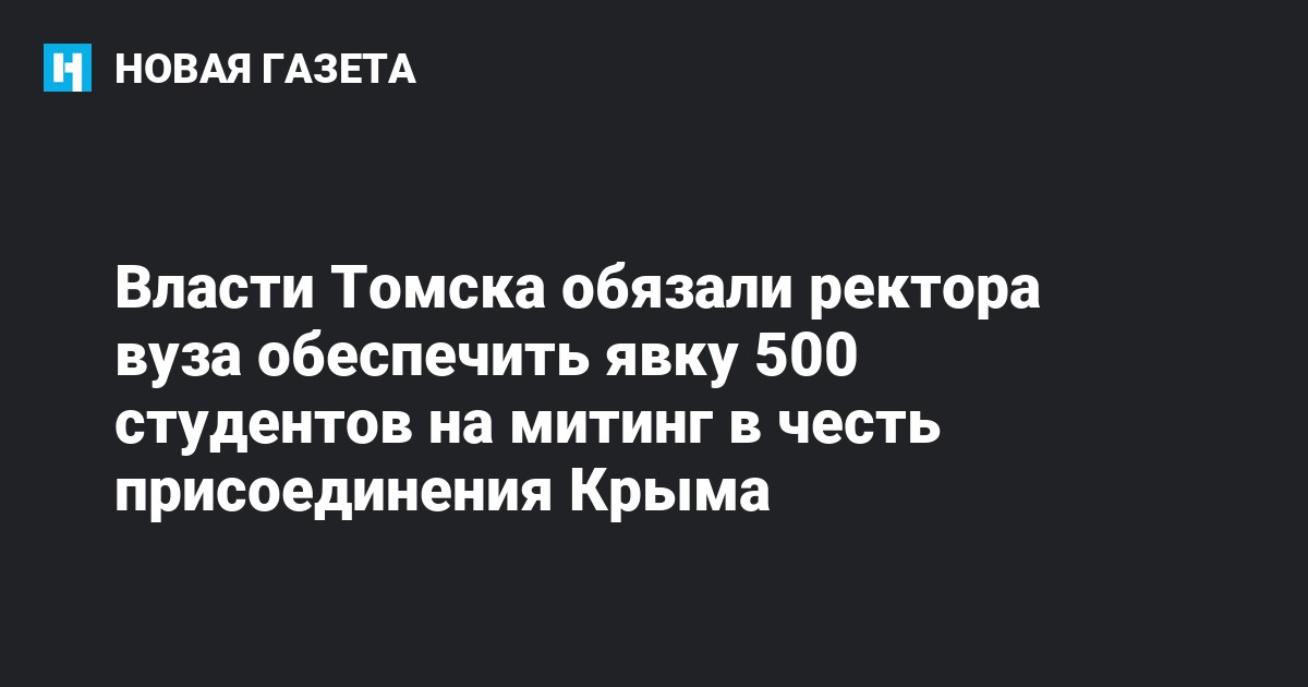 Администрация Томской области обязала Томский государственный университет (ТГУ) направить студентов на митинг в годовщину присоединения Крыма, передает ТВ2. Документ поступил на имя ректора университета Эдуарда Галажинского.