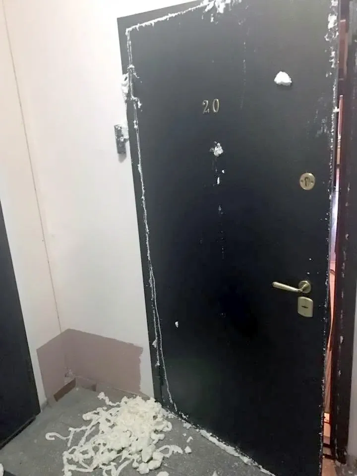 — Было без двадцати семь утра. Замки в порядке, открываются, а дверь не поддается. Позвонила друзьям, те приехали, посмотрели, сказали, что дверь залита монтажной пеной, я им скинула ключи с балкона, снаружи удалось меня вызволить. Потом вызвали полицию. У Алены было то же самое в то же самое время, — Ксения рассказывает, как началось утро 17 марта, когда в Томске Навальный должен был провести встречу с волонтерами. Судя по записям камер наблюдения в подъезде, двое «монтажников» приходили около 4-5 утра, в «мертвый час», как это время называют иногда в полиции. Все крепко спят, вероятность нарваться на кого-то минимальная.