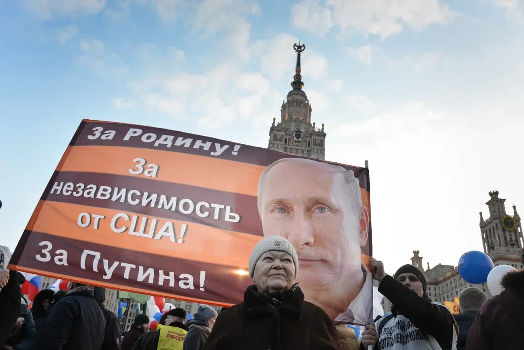 Сигнал телефона пропадает почти сразу после прохода рамок: прямую трансляцию вести не получается. Вокруг никаких провокаторов, кроме разве что двух ведущих на сцене, пытающихся зажечь замерзающую публику речами о русском Севастополе и славном дне присоединения Крыма 18 марта 2014 года. На выкрики со сцены: «Мы все были в Крыму! У нас у всех есть друзья в Крыму!» — аудитория вяло мычит «даа».