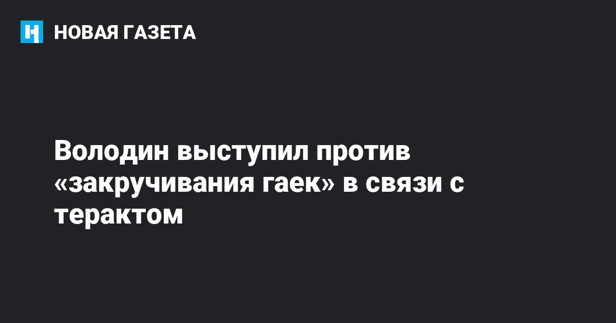 Председатель Госдумы Вячеслав Володин заявил, что чрезвычайные происшествия, в том числе теракты, не должны становиться поводом для «закручивания гаек», передает Интерфакс.