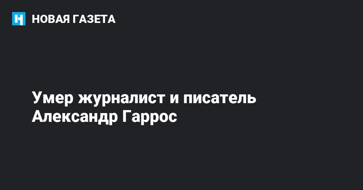 В Израиле на 41-м году жизни умер журналист и писатель Александр Гаррос, автор «Новой газеты». Об этом на своей странице в фейсбуке сообщила его жена, писательница Анна Старобинец.