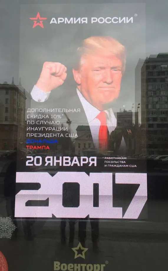 Витрина магазина «Армия России» на Новинском бульваре напротив американского посольства