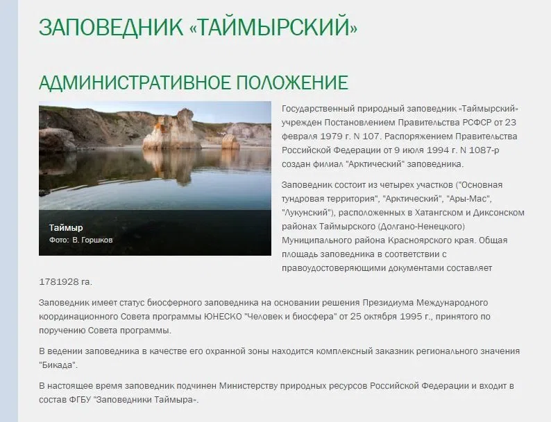 Фотография Горшкова сегодня размещена и на сайте заповедника «Таймырский».