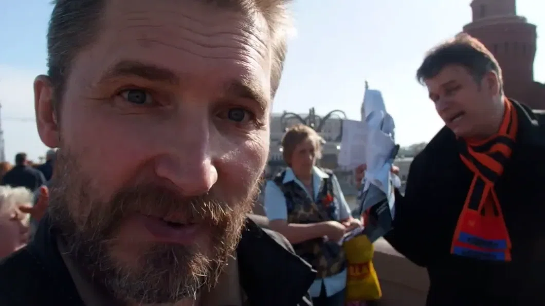 По одной из версий, снимавший нападение на Навального человек может быть похож на активиста радикального движения SERB Алексея Кулакова, у которого похожие черты лица, безрукавка и сумка через плечо.