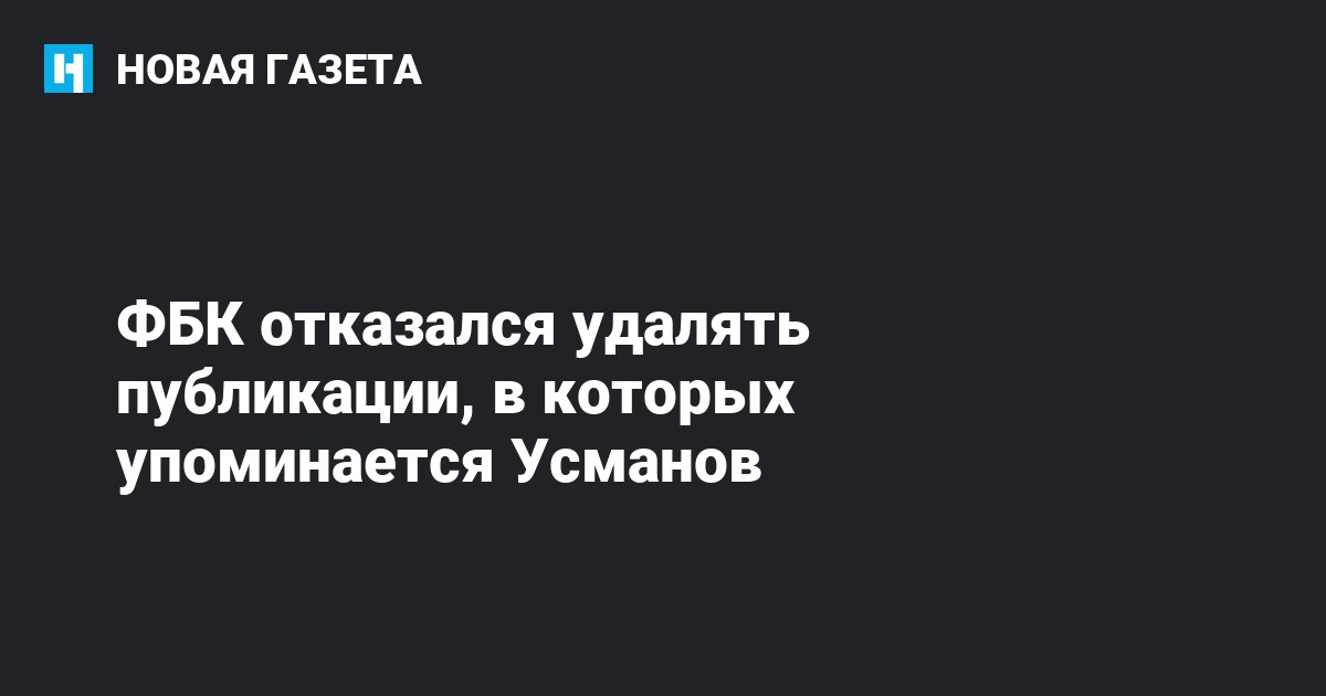 Фонд борьбы с коррупцией (ФБК) Алексея Навального отказался удалять из всех своих блогов и социальных сетей публикации, в которых упоминается миллиардер Алишер Усманов. Об этом «Новой газете» рассказал главный юрист ФБК Иван Жданов.