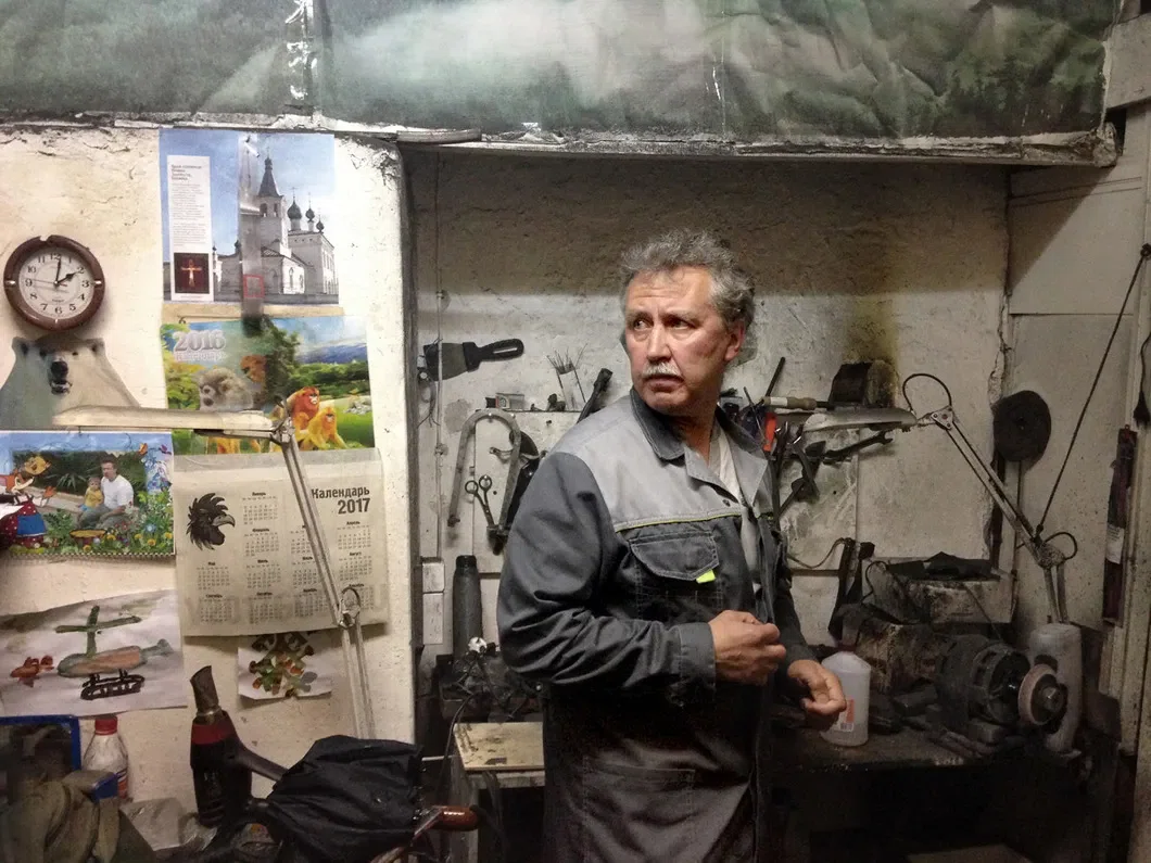 Я фотографирую Чована в его мастерской. Мастерская сапожника находится в подвале самого узнаваемого здания Медвежьегорска — бывшей гостинице управления Беломорканала, когда-то помпезной, а теперь угрюмо осыпающейся. Внук расстрелянного Пальчикова говорит, оглядывая свою коморку: «Может быть, и здесь людей мучили».