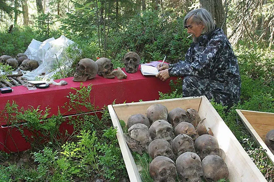 «Мы ходили в сторону Сандармоха собирать грибы: близко, хорошие леса, — вспоминает местный старожил, директор Медвежьегорского районного музея Сергей Колтырин. — Нам казалось, что эти ямы — просто следы войны, потому что здесь был фронт, мало ли — бомбы разорвались. Но вглубь урочища идти как-то не хотелось. Там своя аура, своя специфика — для человека, который немножко переживает, чувствует. Там очень тихо. Там нет птиц. Птички все пролетают мимо. Лес богат шишками — дятел не стучит. Белка не прыгает. Зимой следов нет. Удивительно. Походим, по верхушкам пособираем, уходим».