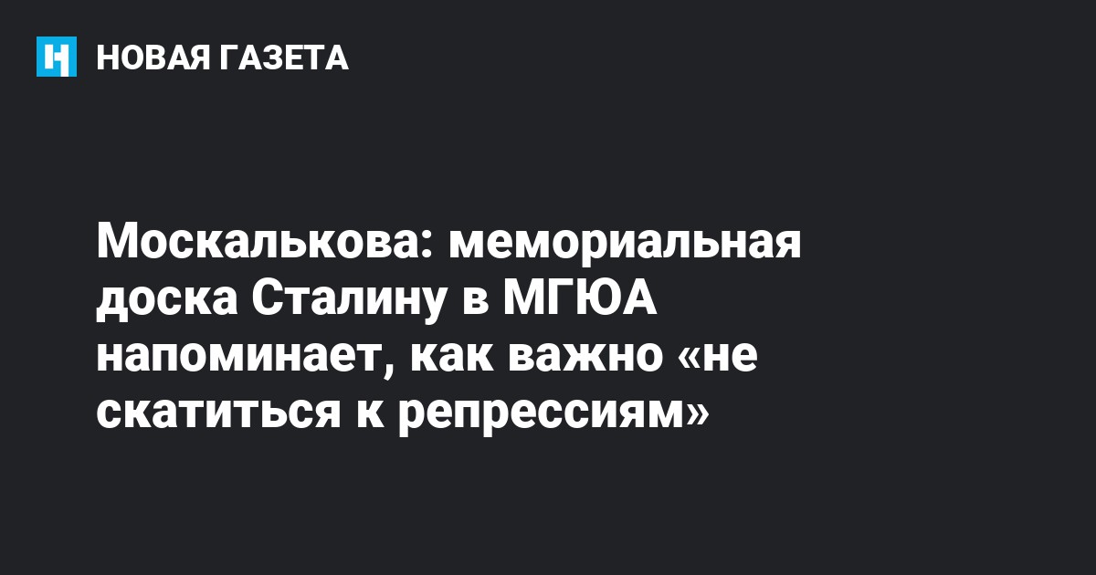 Уполномоченный по правам человека в России Татьяна Москалькова считает уместной мемориальную доску в честь Иосифа Сталина вМосковском государственном юридическом университете (МГЮА), передает «ТАСС».