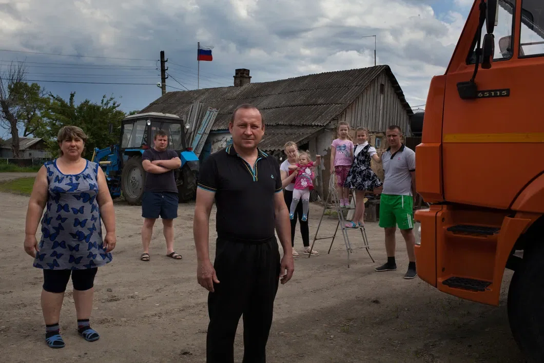Маслов берет трубку, но не успевает найти тряпку, чтобы вытереть руки от мазута. Я оторвала его от важного дела — он чинил один из своих тракторов. Николай сажает кукурузу, зерно, иногда свеклу. Он дружит с семьей Олега Петрова. Когда Олега посадили в СИЗО, Маслов помогал засеять поля. Теперь на нем, по сути, два хозяйства.