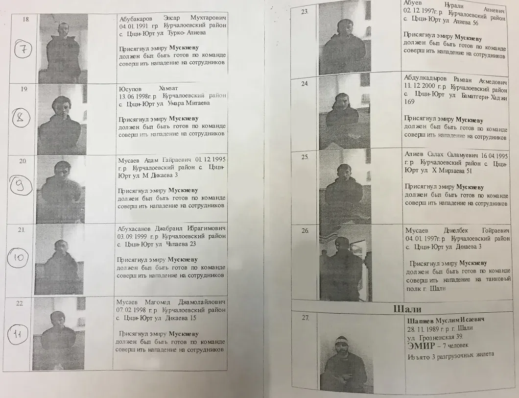 Позднее «Новая газета» получила ксерокопии фототаблиц, составленных сотрудниками МВД по Чечне. Они плохого качества, однако их данные подтверждаются заявлениями родственников по фактам задержания их близких чеченскими силовиками.