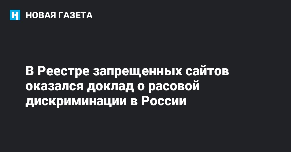 Роскомнадзор включил в реестр запрещенных сайтов альтернативный доклад для Комитета ООН о расовой дискриминации в России за 1996-2001 годов. Об этом говорится на сайте информационно-аналитического центра «Сова».