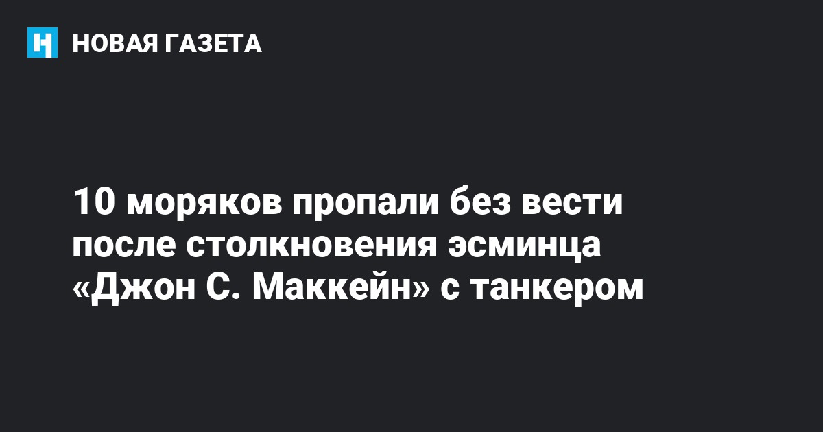 Десять моряков пропали без вести и пятеро пострадали в результате столкновения американского эсминца «Джон С. Маккейн» с нефтяным танкером Alnic MC у берегов Сингапура, говорится в сообщении Седьмого флота ВМС США.