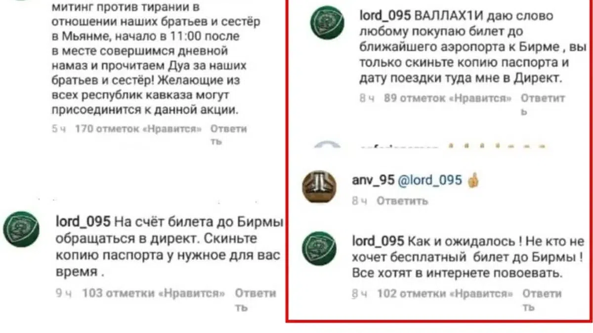 На следующий день после размещения в сети видеоблога Кадырова у посольства Мьянмы в Москве действительно собрались несколько сотен мусульман разных национальностей.